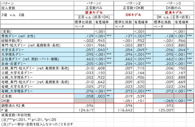 しかしながら年収との関連で回帰分析をおこなった結果、正答数よりもDK数の方が説明力を持つことが多く、正答数だけでは金融リテラシーを十分に測定できない可能性が示されました。これは、金融経済教育において、知識の正確さや正解を教えることだけでなく、問題にどのように向き合うかという思考過程を重視した教育を行うべきであることを示唆しています。授業環境の構築、昇進意欲との関連といった観点から再検討を行っています(この研究は2024年度から始まりました)。