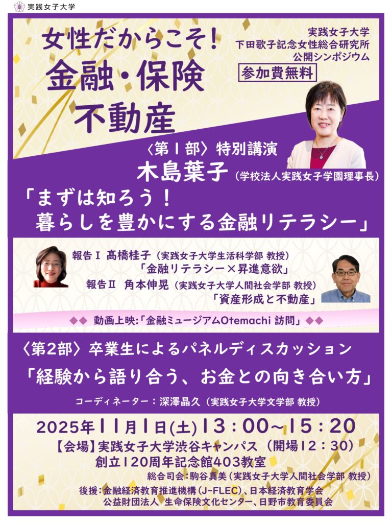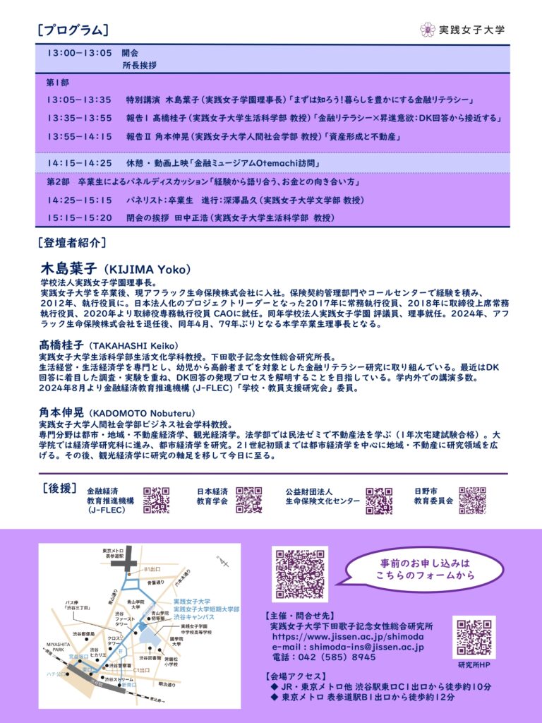 カテゴリ 全ての記事 活動報告・ご案内 アルバム・研究室だより 主な講演・出張授業など 動画紹介 その他 2025.09.30 【開催予告】金融リテラシーに関する公開シンポを11/1開催します 日時:2025年11月1日(土) 13:00-15:30 (開場 12:30)場所:実践女子大学渋谷キャンパス403講義室 カテゴリ記事一覧へ お知らせトップへ